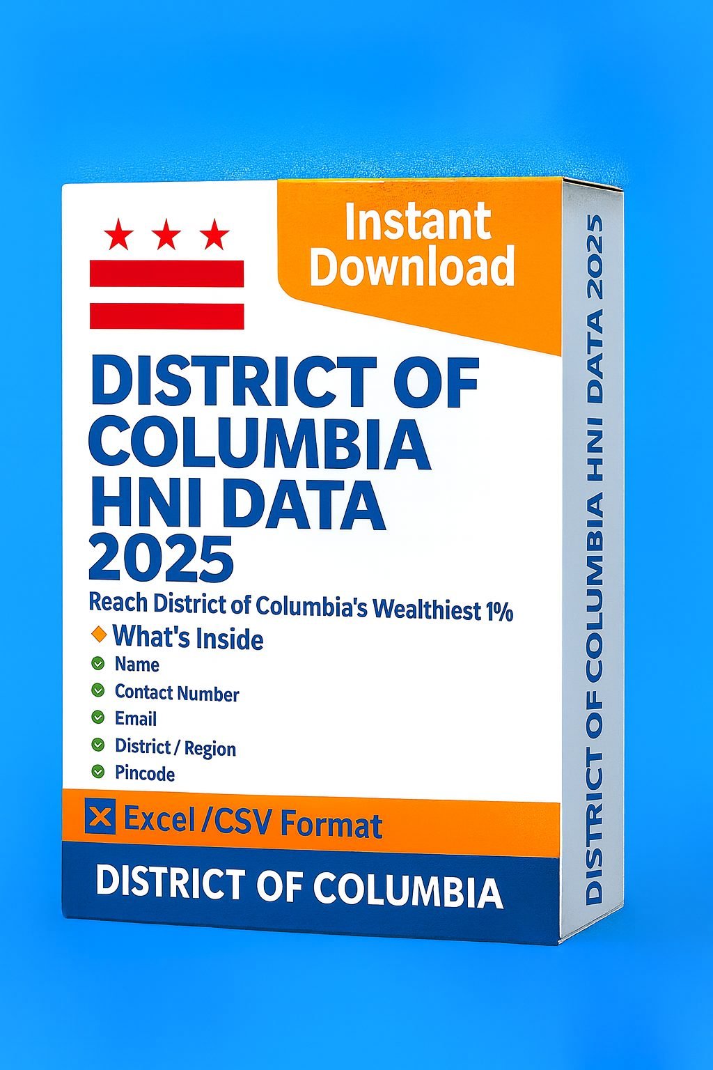 The District of Columbia HNI Data is a premium Excel-formatted file that includes verified and updated information on high-net-worth individuals (HNIs) from Washington D.C. These individuals hold strong financial positions and influential roles across federal, private, corporate, and specialised industries.